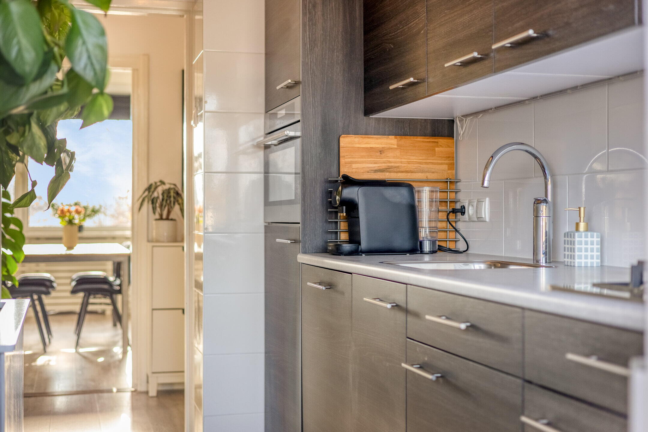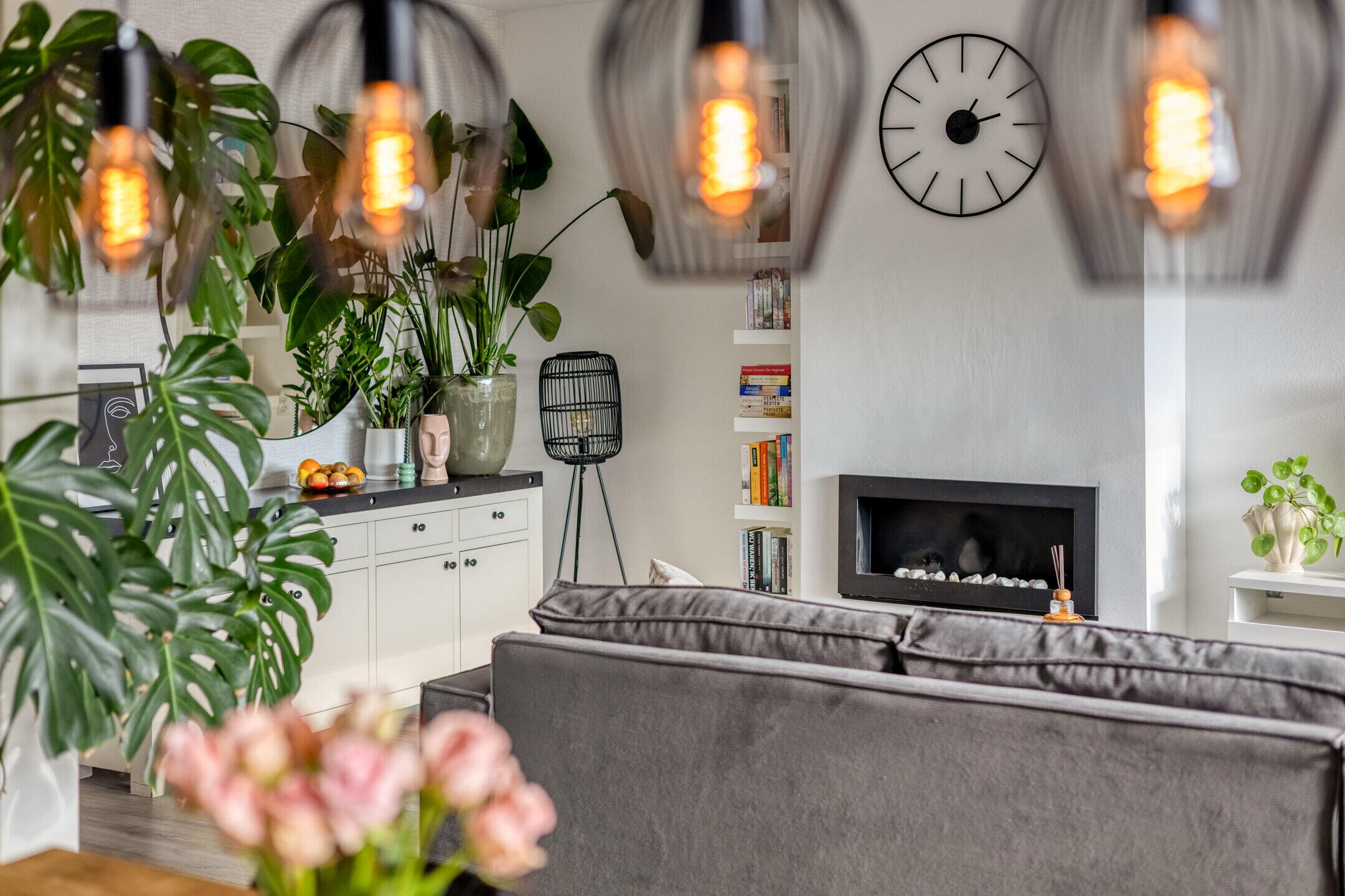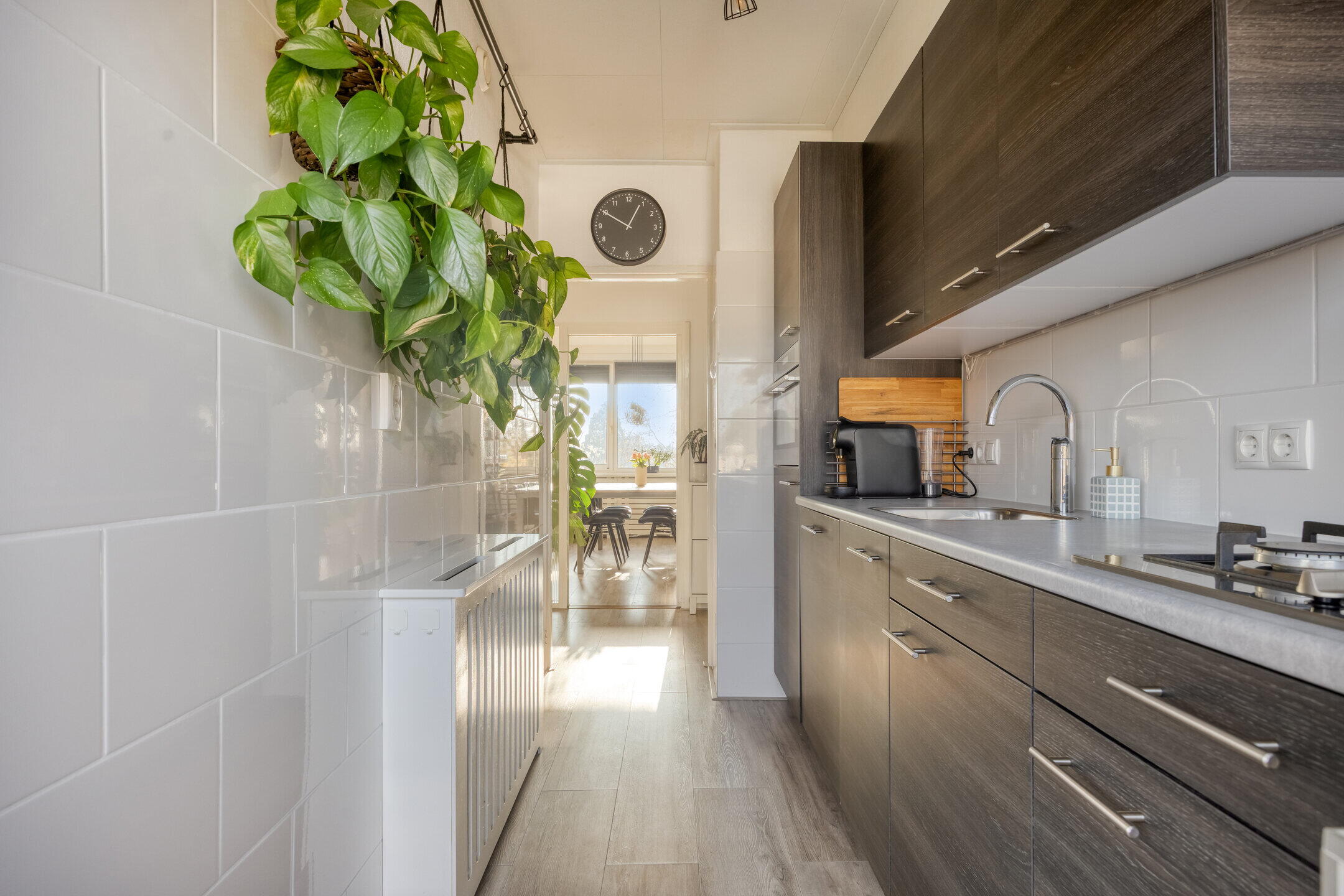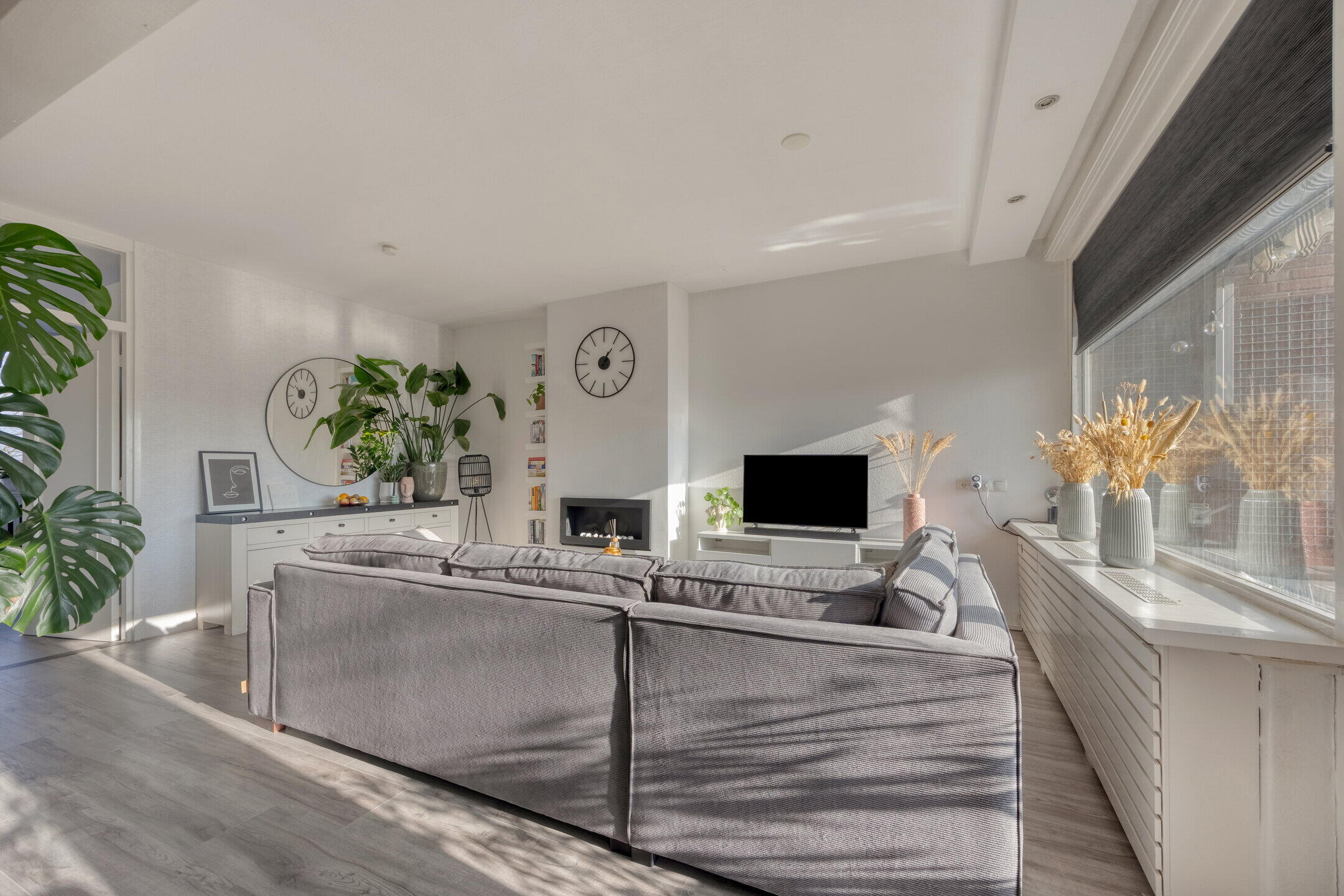 De woonkamer is een plaatje! Sfeervol, ruim en heerlijk licht dankzij de grote raampartijen. De haard op bio ethanol zorgt voor extra gezelligheid en er is meer dan genoeg ruimte voor een grote loungebank én een royale eettafel. Vanuit de woonkamer loop je zo het eerste balkon op, compleet met zonnescherm — perfect voor lange zomeravonden. De moderne keuken is bereikbaar via de hal en voorzien van diverse inbouwapparatuur. Hier vind je alles wat je nodig hebt om met plezier te koken. Ook heb je toegang tot het tweede balkon: ideaal voor een kop koffie in de ochtendzon.
